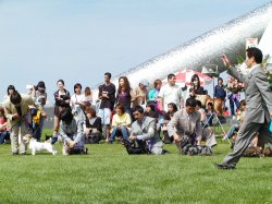 「札幌アーサードッグクラブCH展」 (モエレ沼公園) モエレって、不思議な響きです。アイヌ語なんでしょうか? ネットでモエレ沼公園を調べたら、 世界的な彫刻家の故イサム・ノグチ氏の設計によって作られていて 芸術的で変わった遊具がたくさんある 魅力いっぱいのとっても広い公園だそうです。 そんな所で、ドッグショーが出来るなんて北海道の人が羨ましいな。 でも開始直前まで霧雨が降っていたため草がベチョベチョ。 小型犬には、この日のグランドコンディションは良くなかったみたいです。 そうそう、この時の虫刺されがすごかったそうです。 みんな治ったかなぁ。(;_; )おろおろ ( ;_;)おろおろ だけどU・ェ・Uワンが刺されて無いのは何故? 画像の説明は、頂いたビデオを見ながらつけました。 |